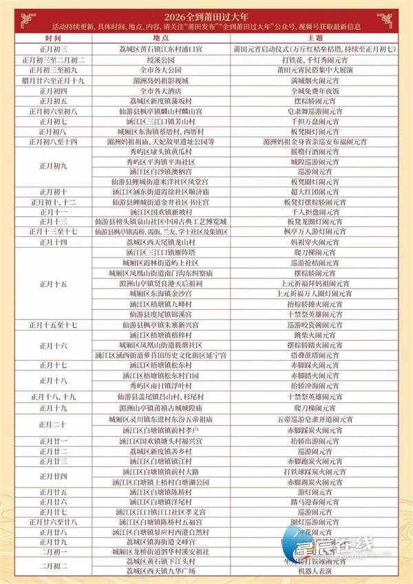 (莆田过大年活动日历。活动主办方供图)