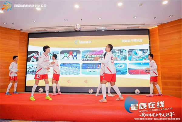 星辰在线2月9日讯(星辰全媒体记者 贺亚玲)2月9日,“我的体育老师是冠军”——“冠军体育教育计划进校园”暨2026湖南省青少年品牌赛事推荐会在长沙举行。本次活动旨在向社会各界推介湖南省全新升级的青少年体育赛事体系,搭建公益与市场深度交融的合作平台,为即将到来的2029年第十六届全运会预热蓄力,全面夯实青少年体育根基。