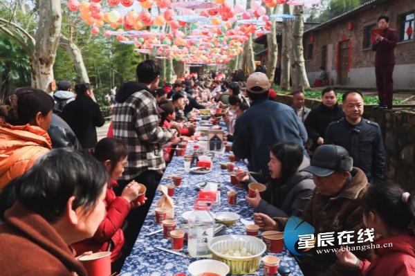 宴席间,八轮惊喜抽奖环节穿插进行,整头年猪、特色酱酒等百余份丰厚年礼陆续送出,现场欢呼声、喝彩声不断,气氛热烈非凡。这场长龙宴不仅是一场味觉的盛宴,更是一次生动的乡土文化展示,让市民游客在品尝美食的同时,深入了解莲花镇的乡村文化与民俗风情,感受邻里相聚的团圆温情。