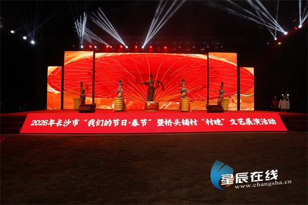 星辰在线2月11日讯(星辰全媒体记者 郭凤湘 通讯员 刘俊 向岚心 实习生 成理)“在家门口就能看这么精彩的演出,还有咱村里人自己跳的舞,这年味儿才叫浓!”2月11日,湖南湘江新区雷锋街道桥头铺村墨庄前坪张灯结彩、暖意融融,村民们的欢声笑语此起彼伏,“新风迎新年 和美共团圆”2026年长沙市“我们的节日·春节”暨桥头铺村“村晚”文艺展演活动在此火热启幕。这场以群众为主角、以文化为纽带、以文明为底色的乡村文化盛宴,不仅让现场乡亲们沉浸式感受新春喜悦,更通过长沙晚报网、掌上长沙APP同步直播,让远在他乡的游子也能云端邂逅家乡年味,共同见证桥头铺村在人居环境、乡风文明、基层治理中的喜人蜕变。