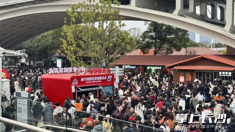 19日,长沙天气由雨转晴,暖阳初露。记者步入橘子洲景区,立刻被一股澎湃的人潮热浪包裹。地铁出口处,南腔北调交织。拖着行李箱的各地游客、扶老携幼的本土家庭,汇成一股股有序而热闹的人流。身边一位刚下地铁的江西游客王女士笑着对记者说:“今年特意带家人来长沙过年,第一站就奔橘子洲头,没想到这么热闹!”这个春节假期,作为长沙文旅的“顶流”地标,橘子洲持续火爆。面对如潮的游客,景区如何确保秩序与安全?又如何让这趟新春之旅既安心又精彩?记者进行了实地探访。