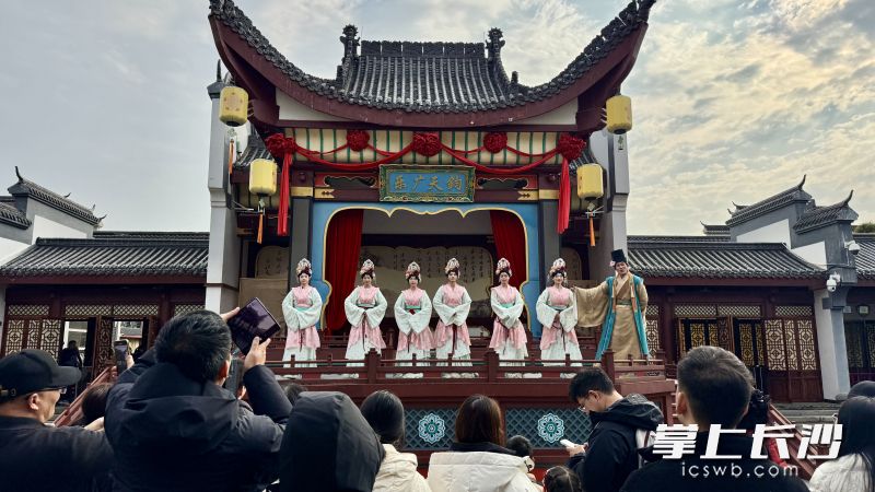 此外,洲上的长沙非物质文化遗产馆内“非遗贺新春”系列活动也人气十足,馆内戏园里长沙非遗展演团带来的花鼓小调《放风筝》、戏曲变脸《姹紫嫣红》、快板《玲珑塔》、长沙弹词《话长沙》、相声《星城趣谈》等演出轮番上演,吸引大批游客观看,赢得阵阵叫好。
