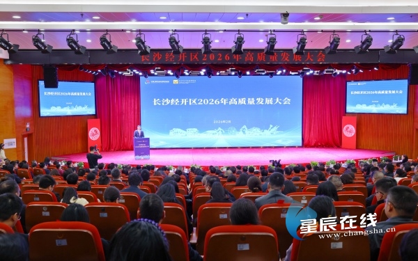 星辰在线2月26日讯(星辰全媒体记者 贺亚玲)2月26日,长沙经开区召开2026年高质量发展大会,300家企业负责人与园区干部职工齐聚一堂,以同心之力谋发展新篇。大会集中发布惠企政策、表彰先进典型、部署重点任务,为园区奋进“十五五”、奋战“开门红”注入强劲动能。