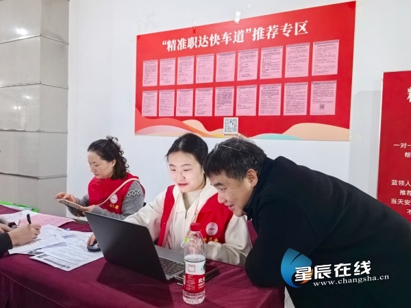 (在“精准职达快车道”服务区,工作人员为求职者提供“简历初筛-岗位匹配-即时面试”全流程服务。)