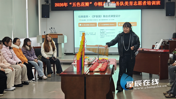 星辰在线3月10日讯(星辰全媒体记者 彭穗 通讯员 姜娟) 近日,长沙市“五色花瓣”巾帼志愿服务队美育志愿者“奥尔夫音乐”培训班开班。这支由市妇女儿童活动中心组建的全市性巾帼志愿服务队,通过“理论精讲+实操演练+课堂落地”的模式,为30余名新加入的志愿者赋能充电,让公益美育服务更好地走进校园、社区和家庭。