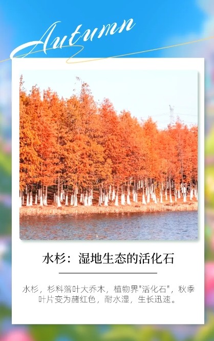 水杉林是湿地生态系统的指示物种,其生长状态直接反映水域环境质量。一公顷的水杉林每年可吸收18吨左右的二氧化碳,释放12吨氧气,同时为候鸟提供栖息地。
