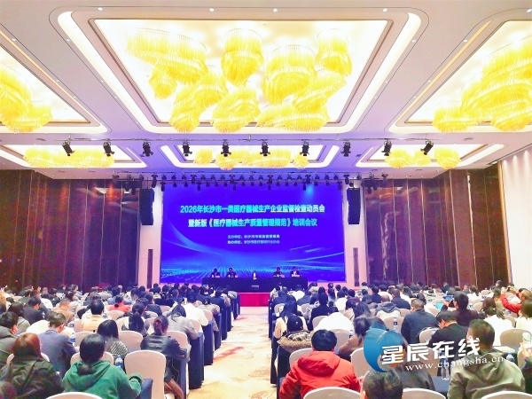 星辰在线3月13日讯(星辰全媒体记者 贺亚玲 胡宇薇)3月13日,长沙市召开2026年度一类医疗器械生产企业日常监督检查动员会暨新版生产质量管理规范培训会议,全面通报2025年监管成效、剖析行业突出问题,明确2026年监管重点与执法方向,多措并举推动全市医疗器械产业高质量、规范化发展,筑牢公众用械安全防线。
