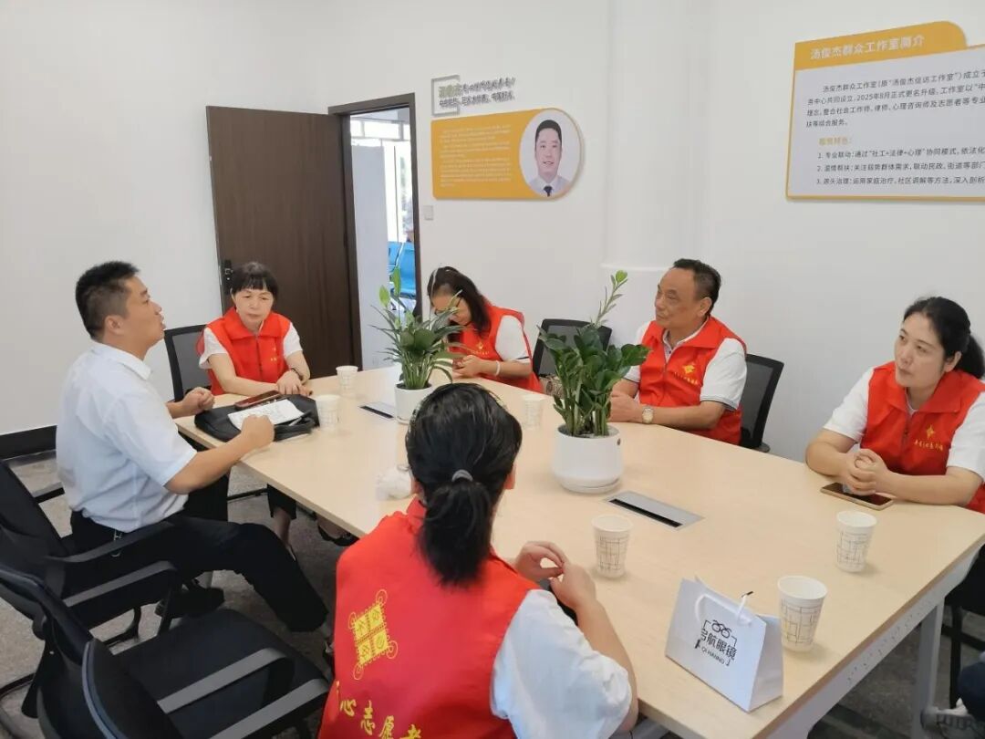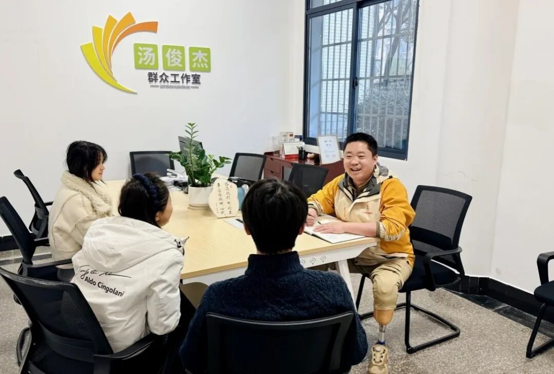 工作室负责人汤俊杰是中国好人、全国最美志愿者,自幼双腿截肢却始终坚韧向善。他用共情之心倾听群众心声、化解矛盾,推动工作室与志愿服务深度融合,构建起工作室引领、志愿者参与、社会共建的基层治理格局。