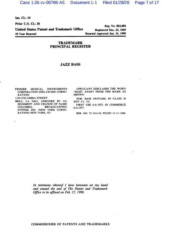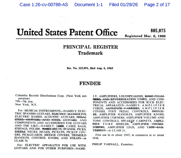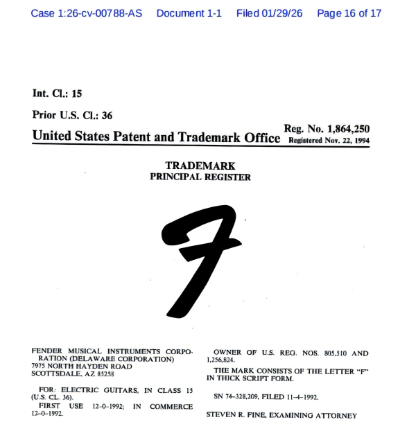 原告:FENDER MUSICAL INSTRUMENTS CORPORATION