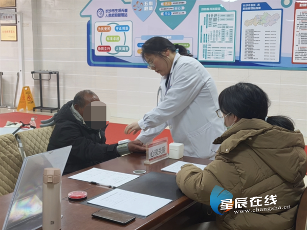 (驻站医生为朱某林做健康检查。图片由 通讯员 提供)