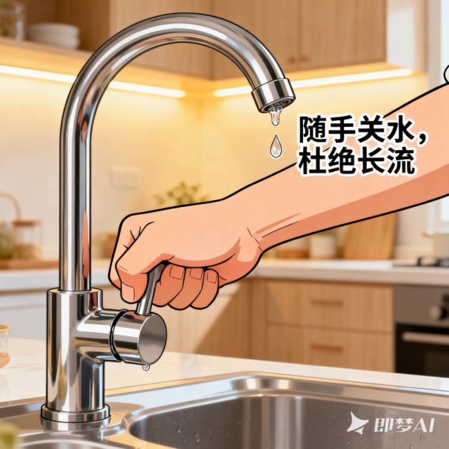 我们可以这样做:洗漱、洗菜、洗手时,随手关闭水龙头,避免水源白白流失;发现水龙头滴漏及时报修,从小细节养成节约用水的好习惯。