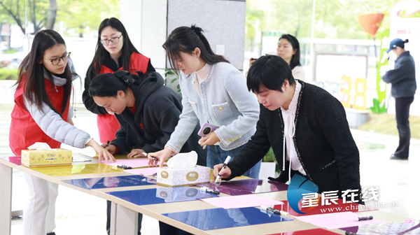 不同于传统的摄影展,活动特别设置了“态度区”创作环节。在开幕式现场,长沙市妇联、街道领导、策展人代表与10位女性代表一同在透明亚克力上书写奋斗寄语。这些承载着温度与力量的文字,成为展览的一部分。