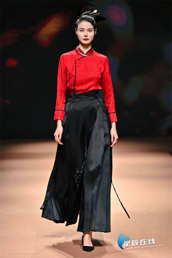 (融入湘绣的新中式服装。)