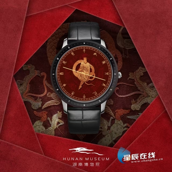 首款推出的手表名为《五星占-烛龙》。设计师选取马王堆T形帛画中的时空之神-烛龙形象作为表针——烛龙尾为时针,烛龙脚为分针。表针表面采用金属3D打印技术描绘湘绣纹理,以此彰显帛画的丝绸质感。一只腕表,同时串联起高庙文化、楚文字、马王堆帛画和湘绣针法,再用现代制表技术呈现——这是传统与科技的四重奏。