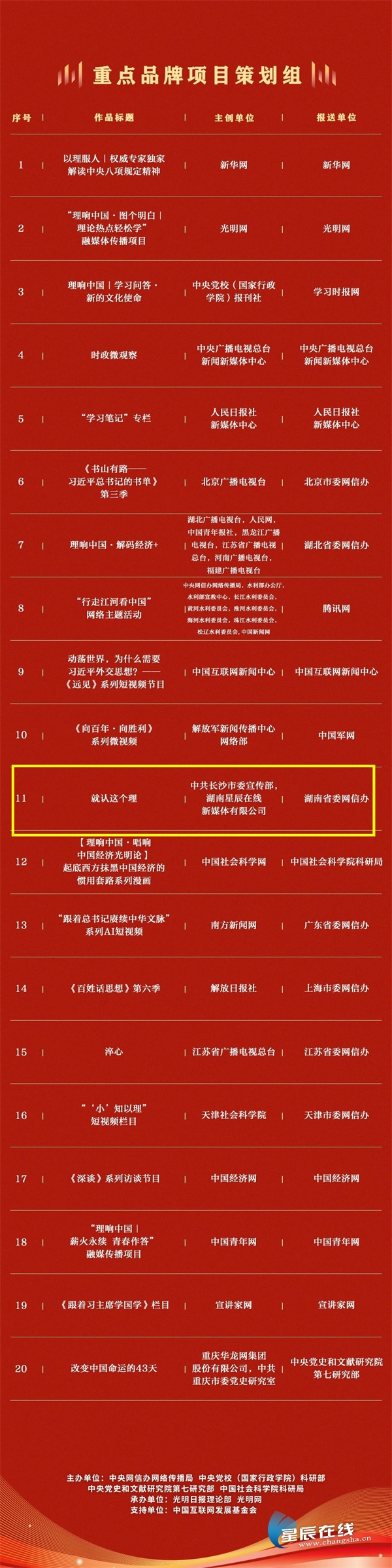 作为2023年评选的首批五家“湖南省党的创新理论网络视频生产传播基地”之一,星辰在线近年来立足自身媒体优势,锚定理论传播高质量发展目标,精心打造了一批高质量可视化理论产品,持续推动党的创新理论入脑入心,《就认这个理》党的创新理论网络视频专题便是其中的标杆之作。