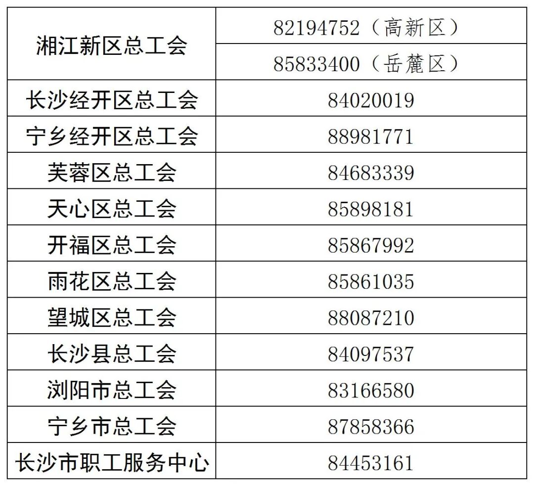 申请过程中如有疑问,可拨打所在区县(园区)总工会或长沙市职工服务中心咨询电话,获取指导服务。
