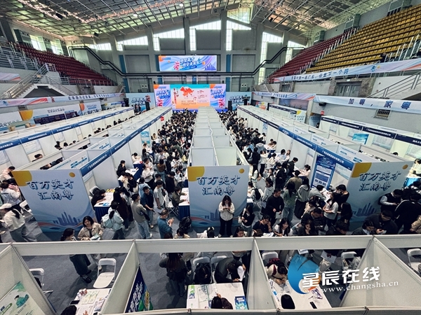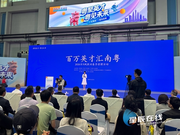 星辰在线4月25日讯(星辰全媒体记者 文春燕) 4月25日,百万英才汇南粤”2026年N城联动春季招聘湖南专场,在湖南大学、湖南师范大学正式拉开帷幕。一趟从粤港澳大湾区驶来的引才专列,满载诚意停靠岳麓山下。超510家企事业单位携超1.4万个优质岗位集结长沙,向湖湘学子发出“向南而行”的邀约。