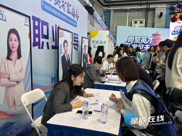 星辰在线4月25日讯(星辰全媒体记者 文春燕)4月25日,“百万英才汇南粤”2026年N城联动春季招聘活动走进湖南大学、湖南师范大学。记者在现场看到,招聘会现场人头攒动、人气爆棚。此次招聘会,佛山超500家用人单位组团出击,领衔全省线上线下超1.4万个优质好岗,将工作机会送到湖湘学子的校园里。