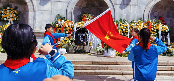 4月1日,开福区清水塘江湾小学开展“行走的思政”清明祭奠英烈活动。