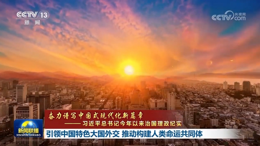 在习近平外交思想指引下,中国特色大国外交不断开创新局面。中国正高举构建人类命运共同体的光辉旗帜,积极践行全球发展倡议、全球安全倡议、全球文明倡议,与世界各国携手同行现代化之路,以中国式现代化新成就为世界发展提供新机遇,共同绘就人类社会现代化新图景。