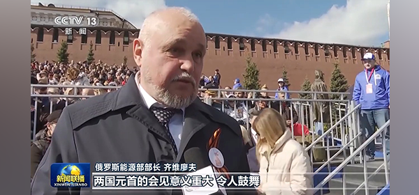 俄罗斯能源部部长 齐维廖夫:两国元首的会见意义重大,令人鼓舞。领导人间的友谊能让我们更有效地开展合作,目前俄中两国在能源领域的合作已经取得了成果,相信未来将继续深入。