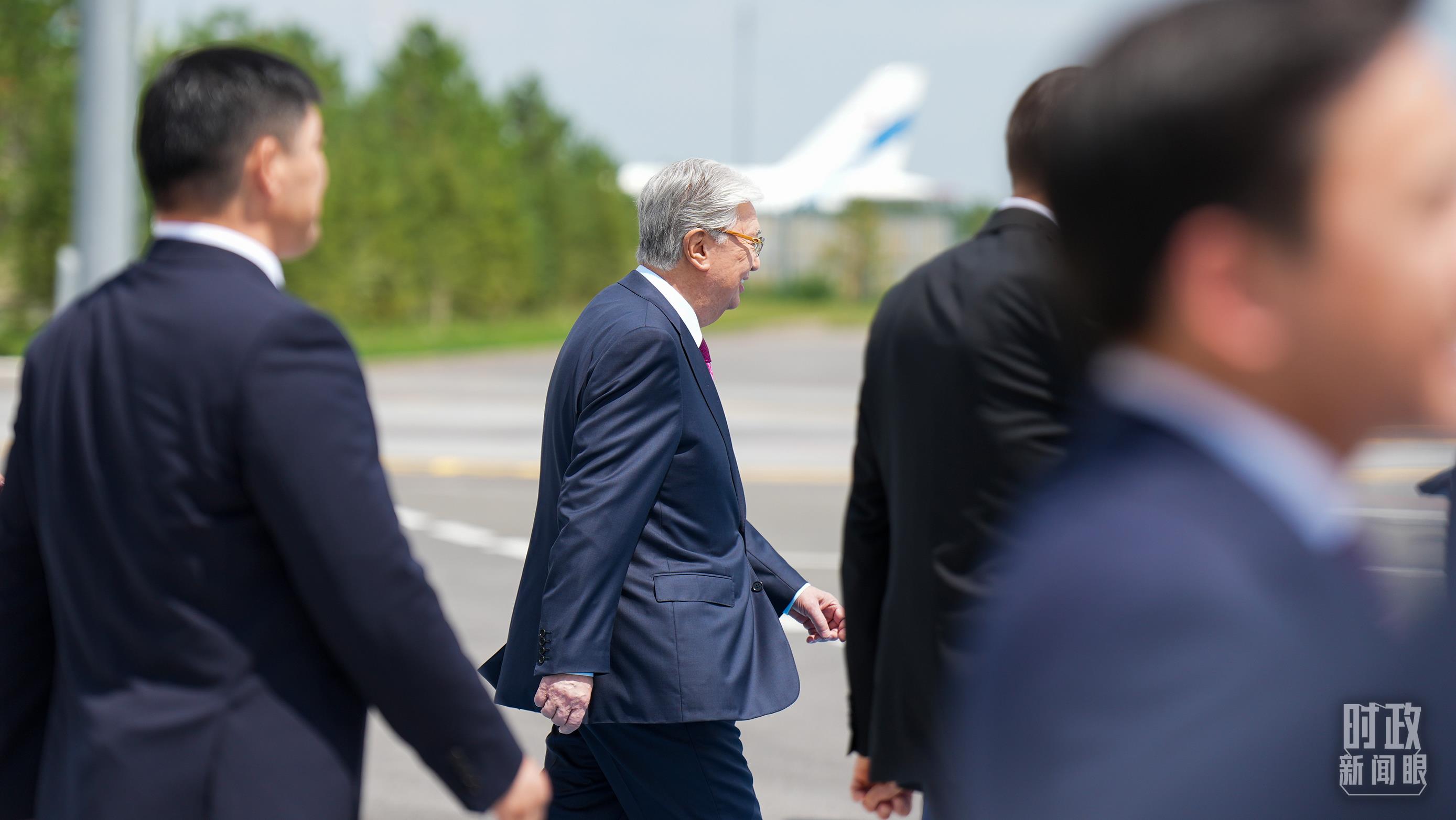托卡耶夫总统在筹备中国—中亚峰会的繁忙日程中,率高级官员赴机场热情迎接。