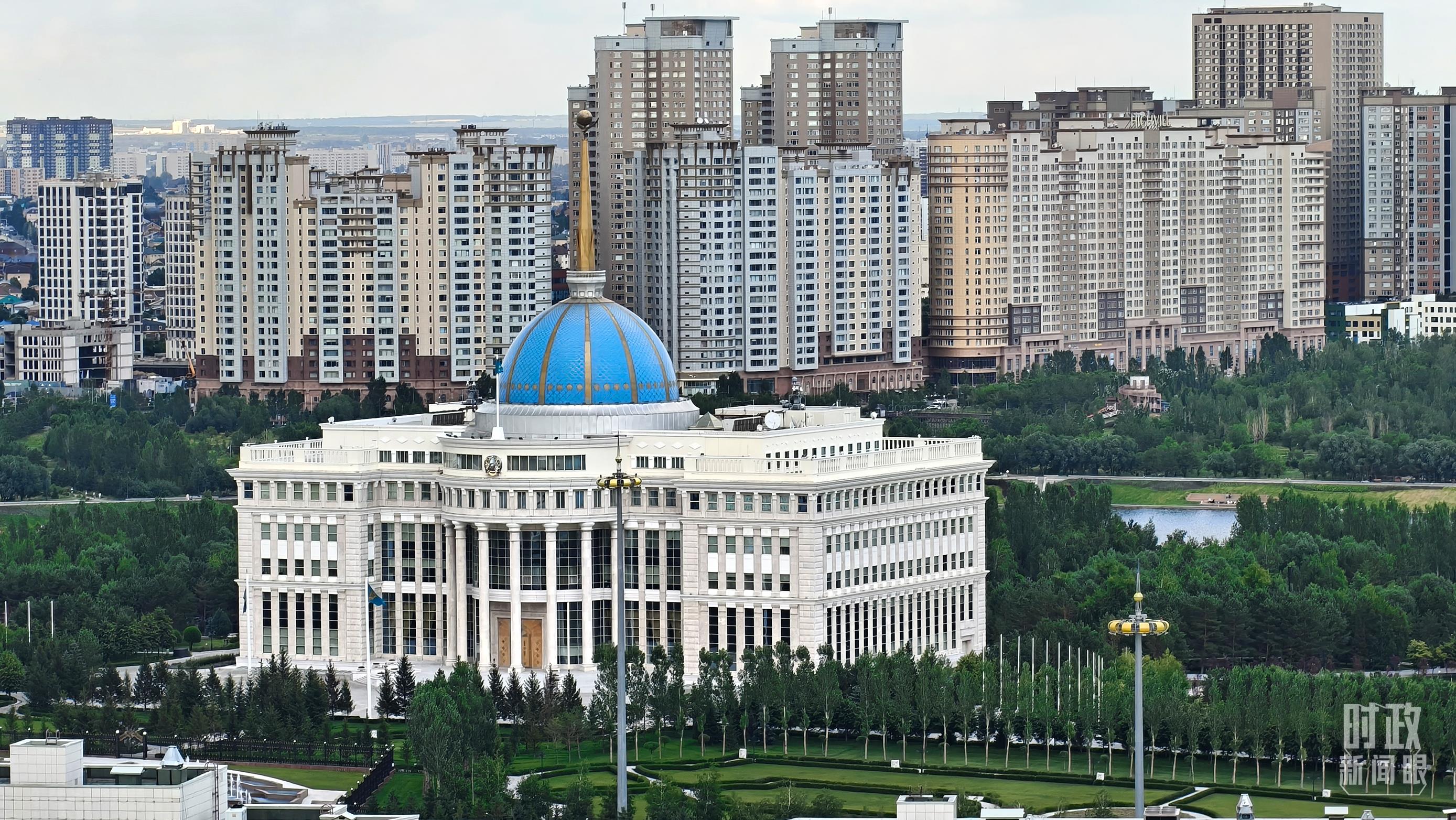 △第二届中国—中亚峰会举办地哈萨克斯坦阿斯坦纳独立宫。(总台央视记者范凯拍摄)