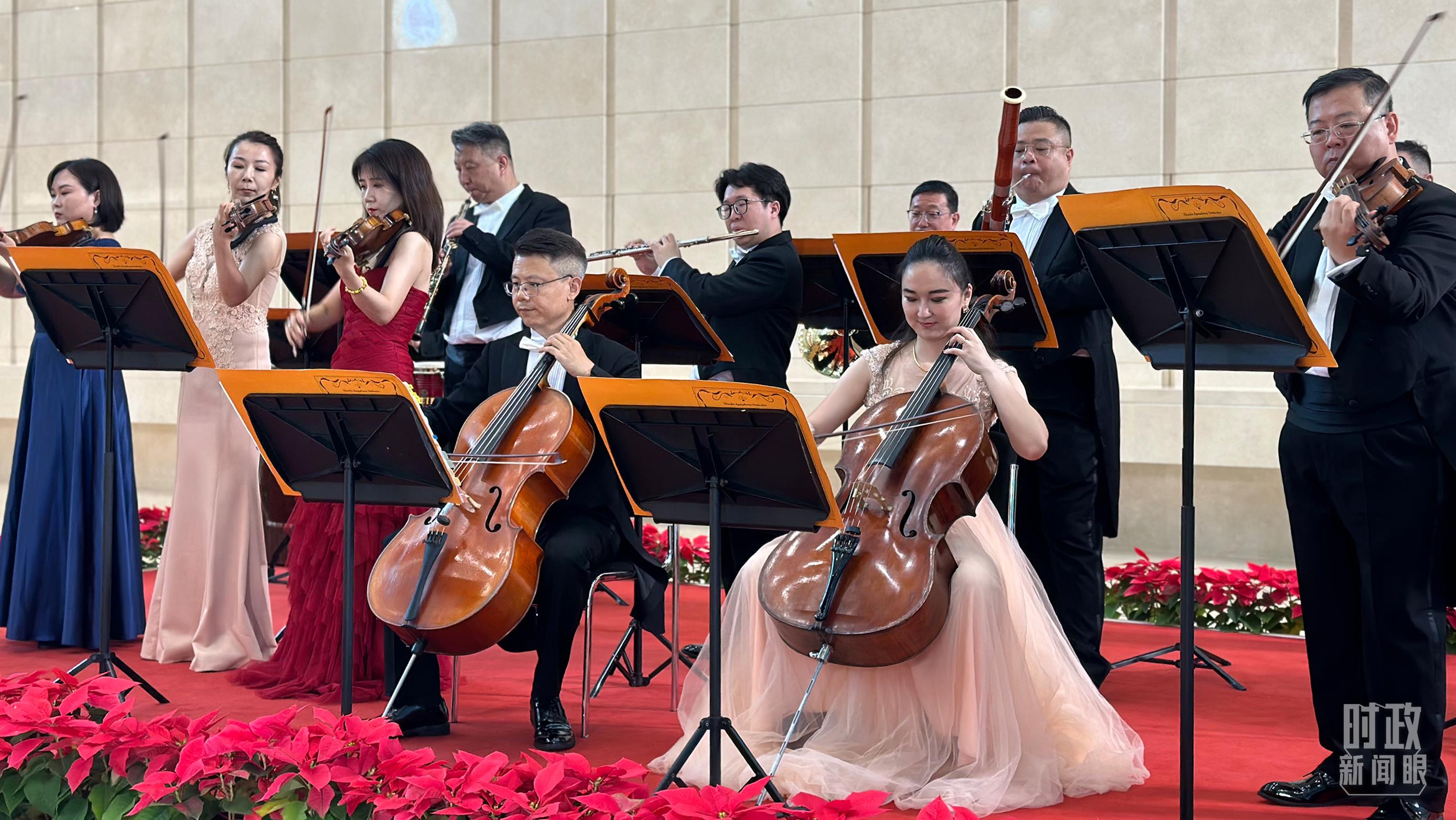 △天津交响乐团演奏与会各国知名乐曲。(总台央视记者卢心雨拍摄)