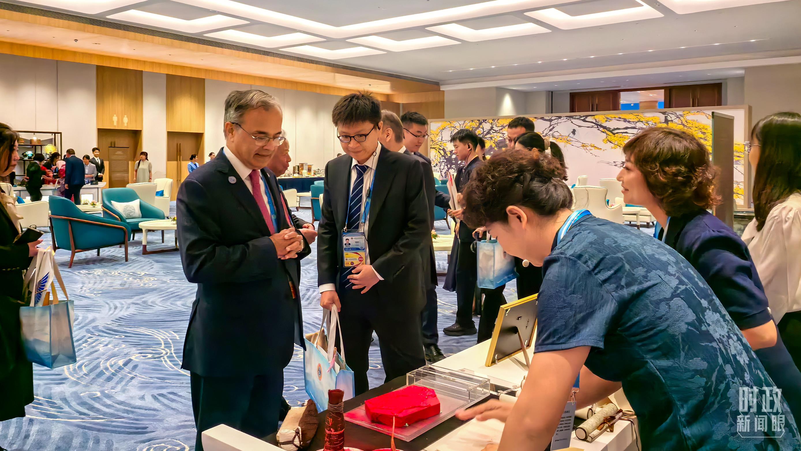 △国际贵宾参观天津非物质文化遗产展示。(总台央视记者王子杭、姚瑶拍摄)