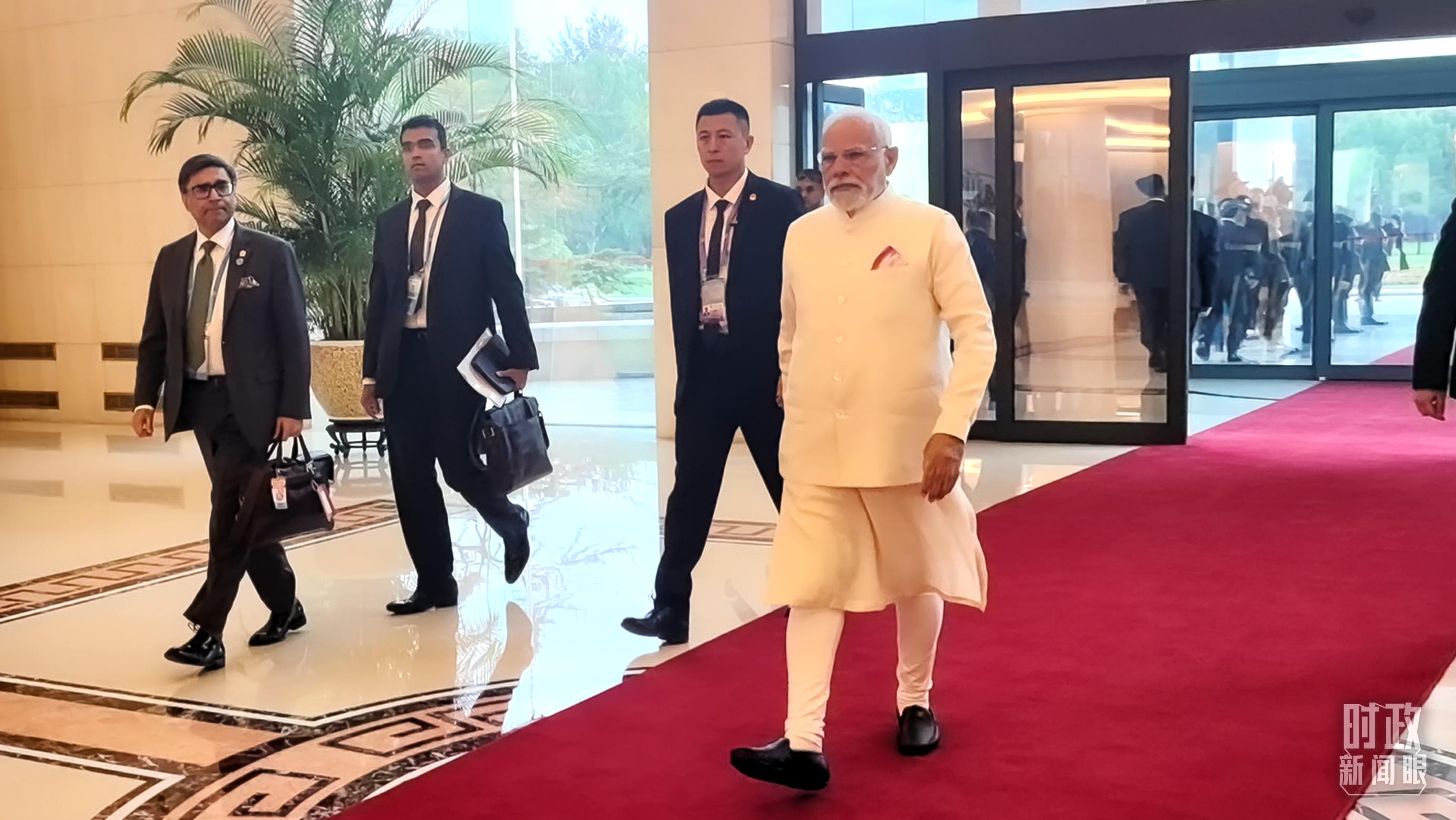 △印度总理莫迪步入会见厅。(总台央视记者范凯拍摄)