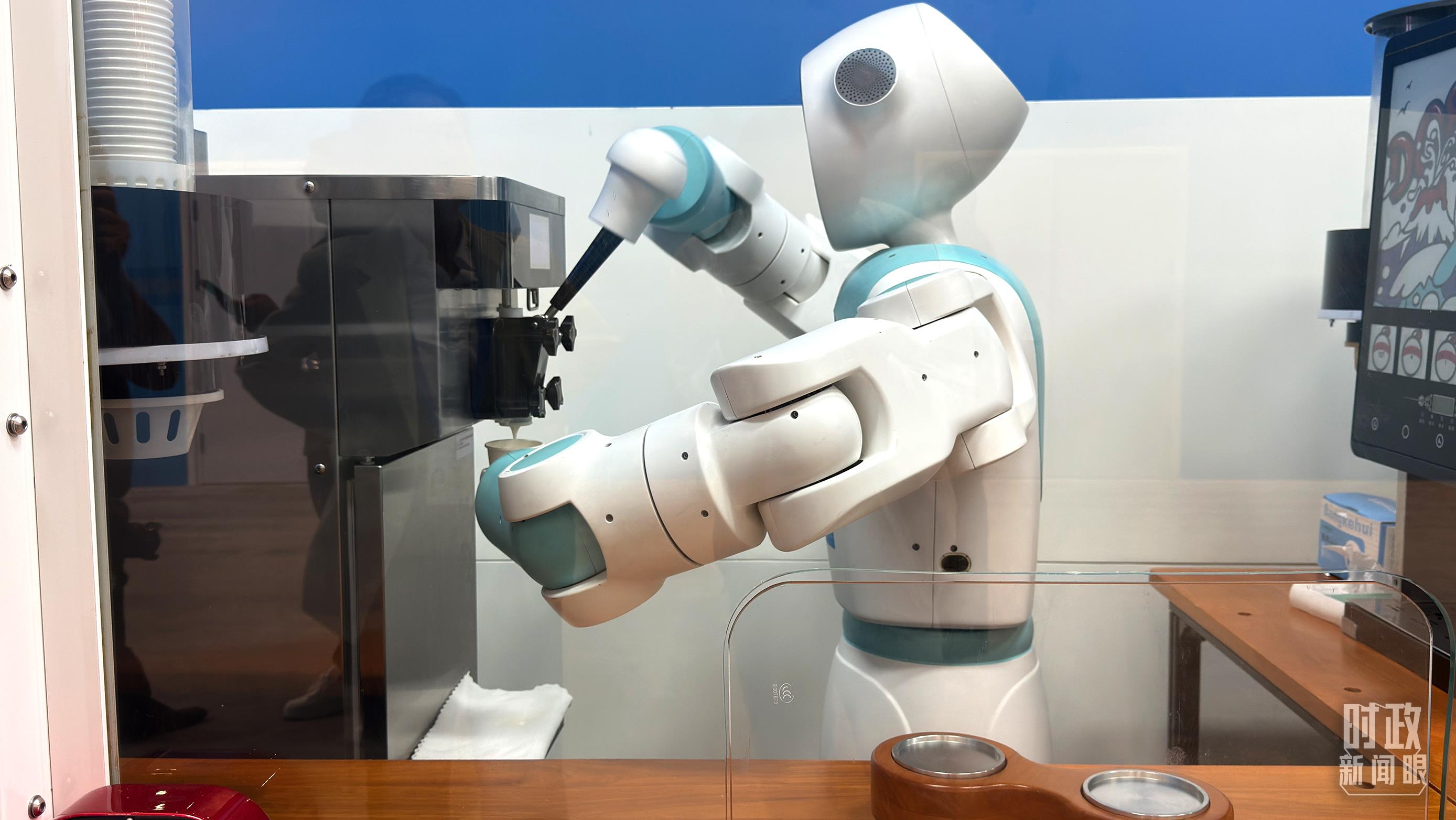 △峰会新闻中心的智能机器人正在制作冰淇淋。(总台央广记者张永鹏拍摄)