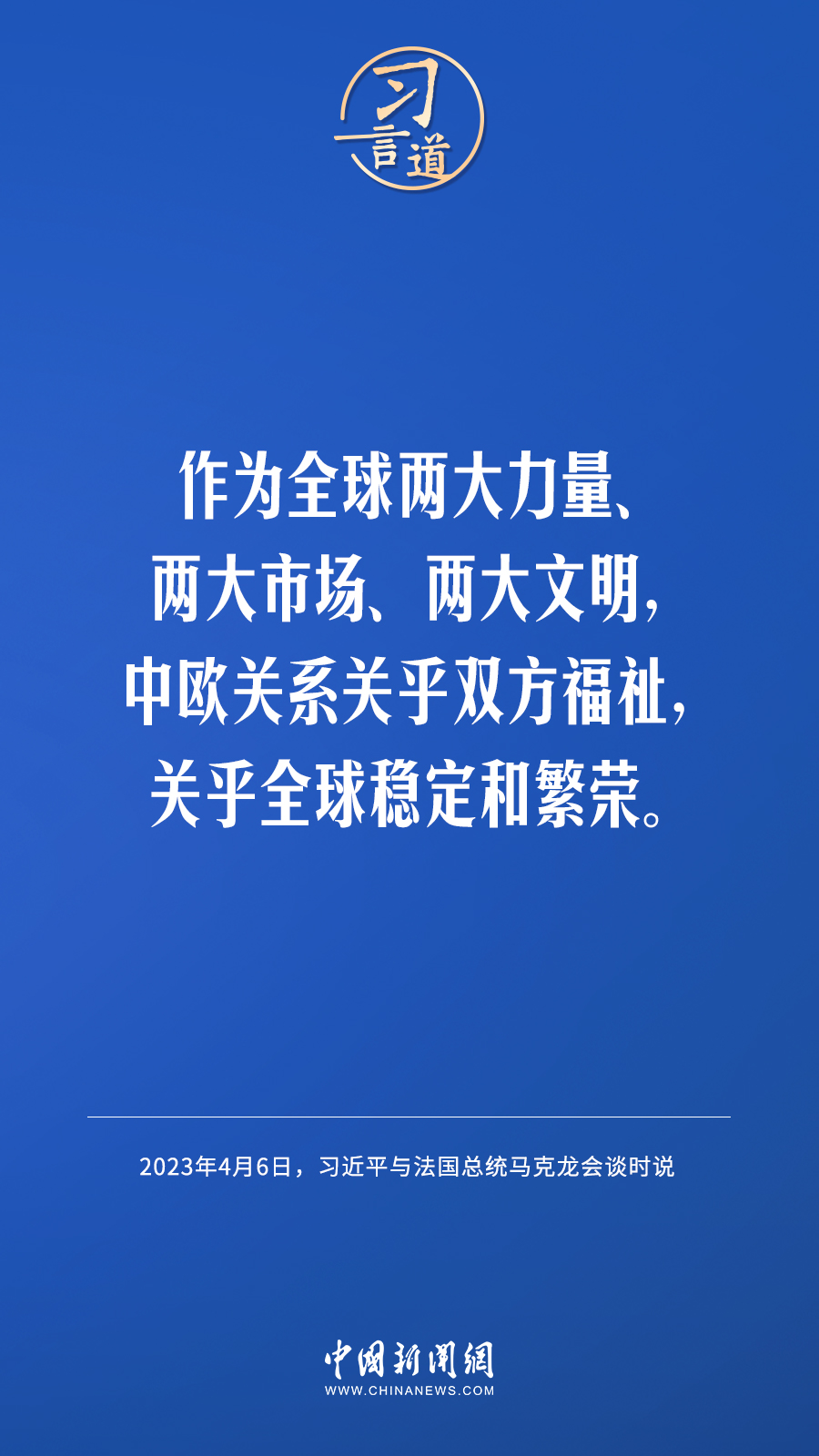 4月6日下午,国家主席习近平在人民大会堂同来华进行国事访问的法国总统马克龙举行会谈。习近平指出——