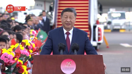 习近平18日下午乘专机抵达澳门,并在机场发表讲话。