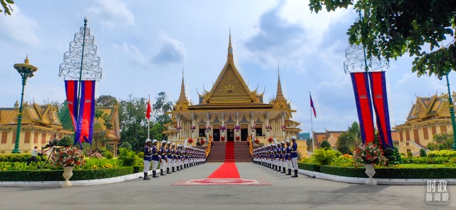 △金边王宫,习主席同西哈莫尼国王、莫尼列太后的会见在这里举行。(总台央视记者刘琦拍摄)