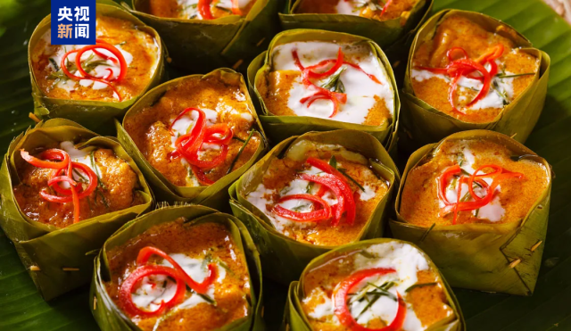 国菜阿莫克鱼(Amok)用椰奶咖喱蒸鱼,再用香蕉叶包裹,香气四溢。