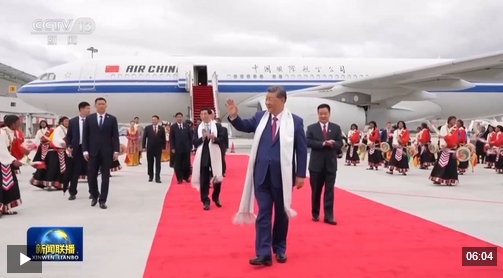 △视频:习近平率中央代表团抵达拉萨出席西藏自治区成立60周年庆祝活动