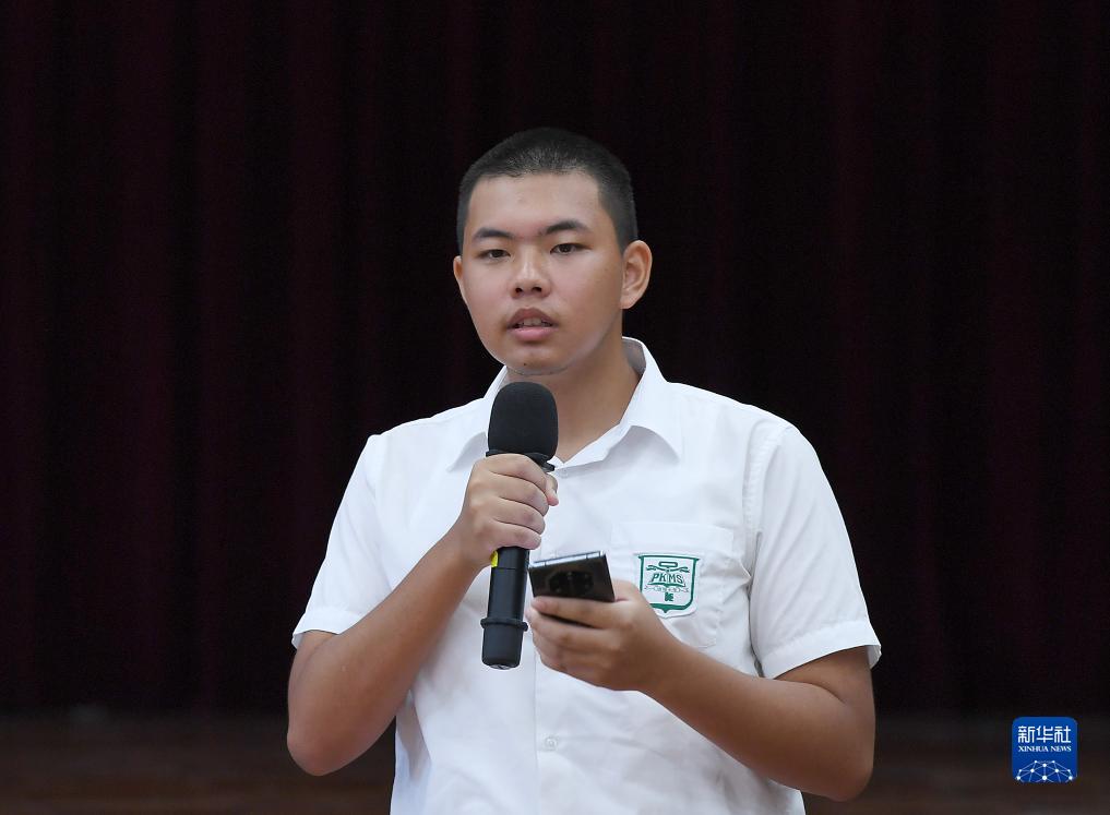 7月25日,曾现场参加在韩志愿军烈士遗骸归国安葬仪式的培侨中学学生代表曲木之懿与大家交流感想。新华社记者 陈铎 摄
