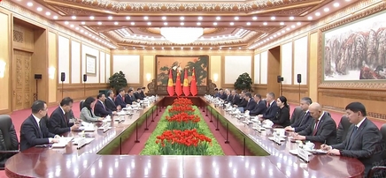 2月5日上午,国家主席习近平在北京人民大会堂同来华进行国事访问的吉尔吉斯斯坦总统扎帕罗夫举行会谈。
