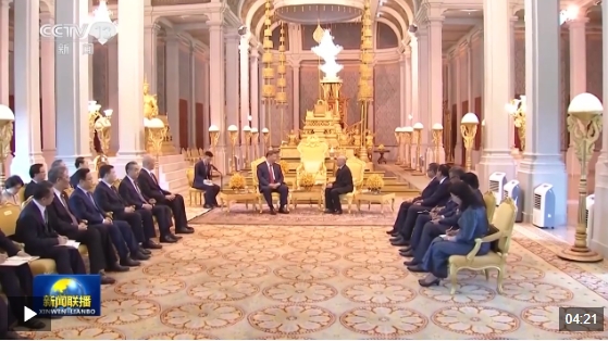4月17日下午,柬埔寨国王西哈莫尼同中国国家主席习近平在金边王宫举行会见。