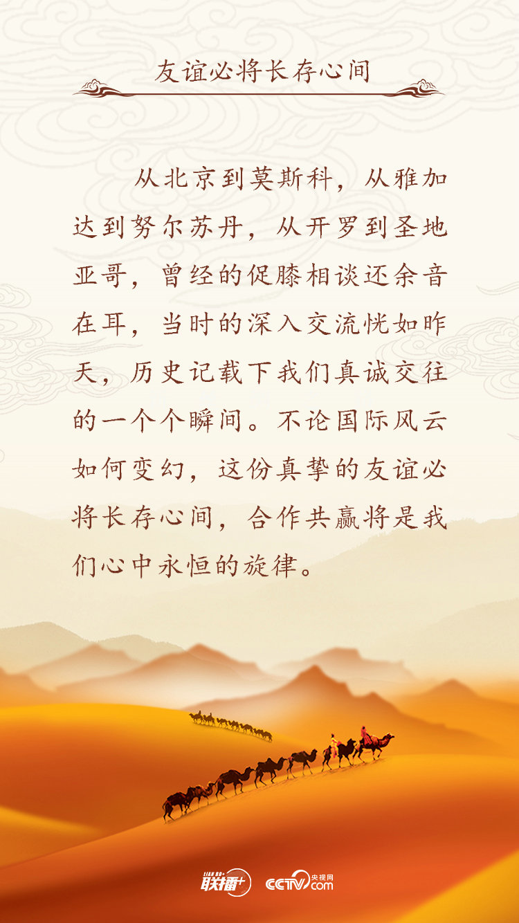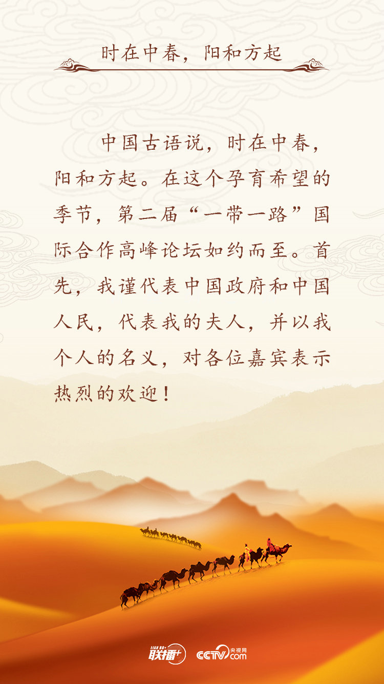 “与君远相知,不道云海深。”晚宴上,习近平致祝酒辞。短短的一千余字情真意切,言近旨远,既表达了对各国朋友的深厚情意,又对“一带一路”合作愿景作了真挚祝福。