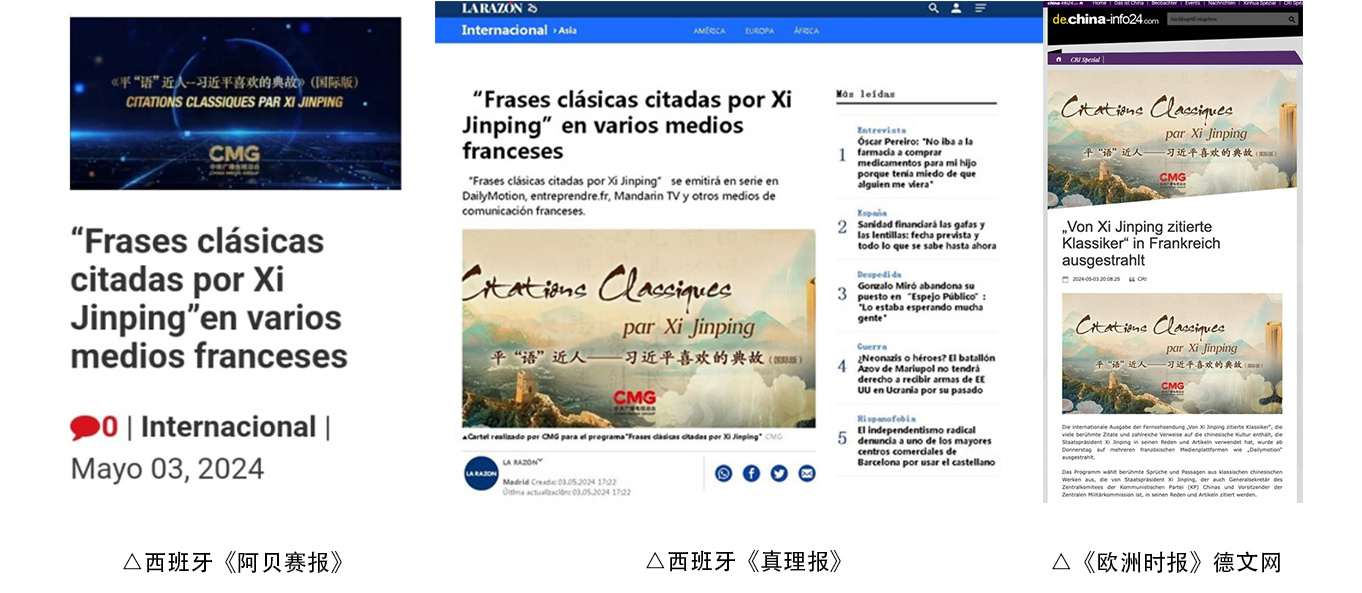 西班牙《阿贝赛报》《真理报》、《欧洲时报》德文网、意大利谷歌新闻网、欧盟记者多媒体集团、总部位于布鲁塞尔的“法语世界网”等多家欧洲主流媒体也对《平“语”近人——习近平喜欢的典故》(国际版)即将播出的消息进行了报道。