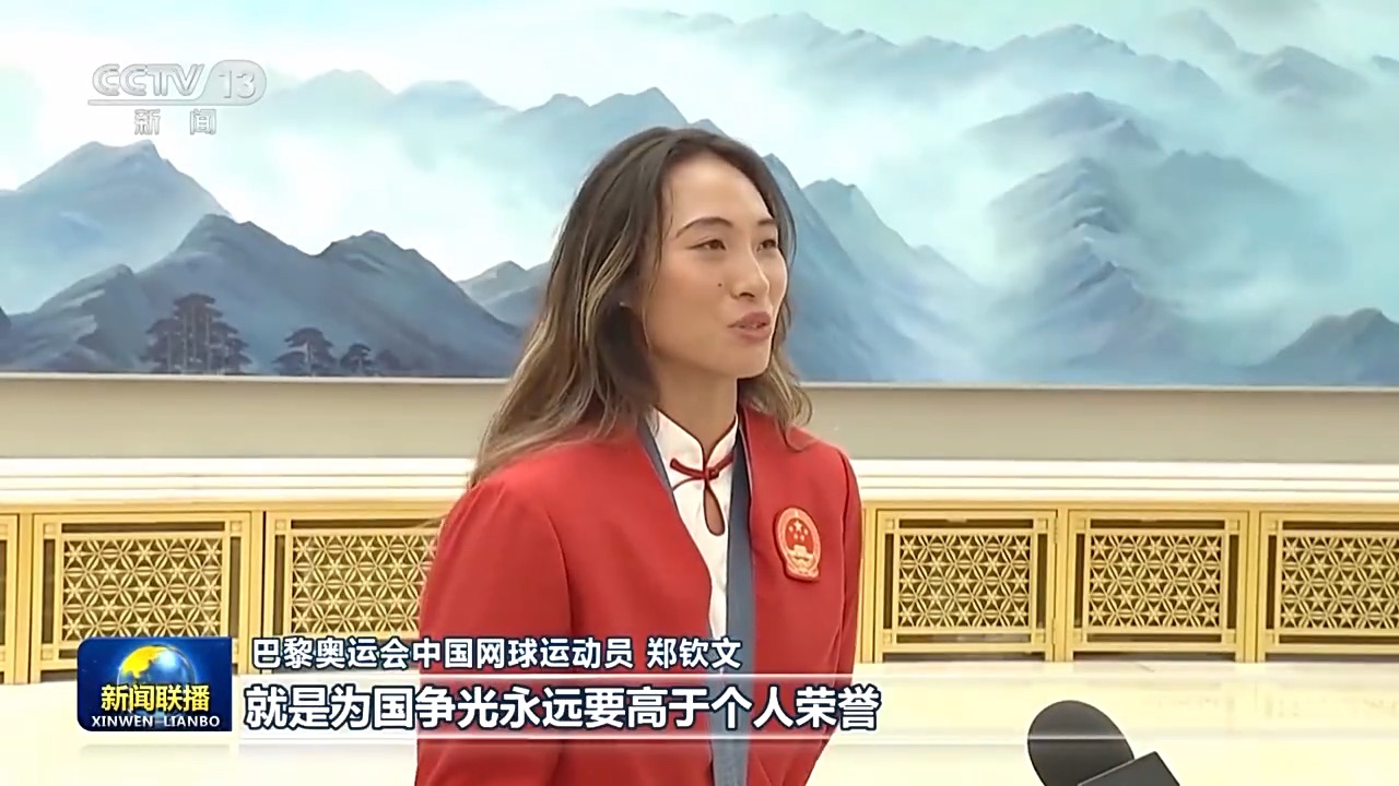 巴黎奥运会中国网球运动员 郑钦文:就像习主席说的,为国争光永远要高于个人荣誉,我也听了许多其他运动员的付出,他们的项目,他们创造的历史,这也非常激励着我。成绩已经成为过去,我们还有新的征程要开始。