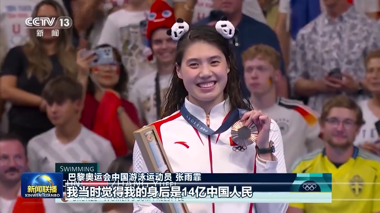 巴黎奥运会中国游泳运动员 张雨霏:没有想到他当时走在我们跟前,每一名运动员的成绩和名字他都记住了,然后就是亲切地与我们交谈,每个人交谈的内容都不一样。我觉得生在中国真好,特别是在赛场上的时候,我没有拿到冠军,但是我看见一面面五星红旗,他们依然在为我加油呐喊,安慰我,我当时觉得我的身后是14亿中国人民。