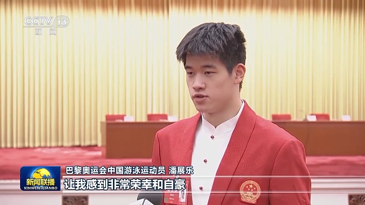 巴黎奥运会中国游泳运动员 潘展乐:参加这次大会,受到总书记的接见,让我感到非常荣幸和自豪。有这么强大的祖国作为我们坚实的后盾,能够让我们在赛场上放心,就是全身心地投入,全神贯注去比赛。我们年轻一代运动员需要有为国争光、挑战人类极限那种的精神和思想,去奋斗,去拼搏,向世界展示中国力量。