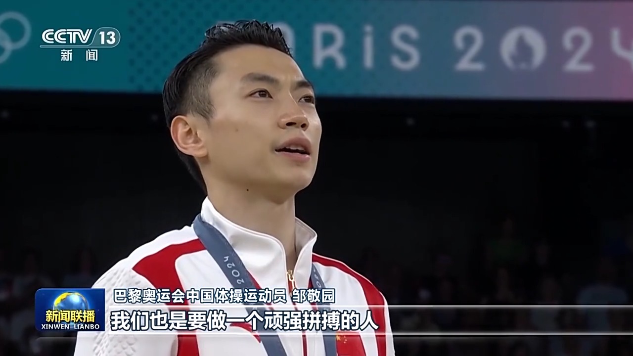 巴黎奥运会中国体操运动员 邹敬园:总书记对我们的关怀,还有殷殷的嘱托,对于我们来说,就是让我们在每个人生当中,不只在赛场上,要发挥我们的顽强拼搏的精神,在生活当中,我们也是要做一个顽强拼搏的人。