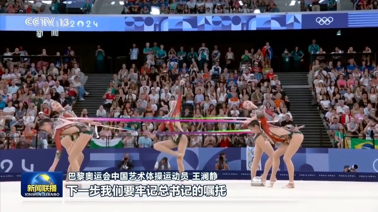 巴黎奥运会中国艺术体操运动员 王澜静:我们3带2球项目当中,融入了很多中国风的元素,也是向世界展现了中华优秀传统文化的魅力。下一步,我们要牢记总书记的嘱托,坚持拼字当头,敢于拼搏、善于拼搏,在新的奥运周期展现中国运动员的精神风貌和竞技水平。