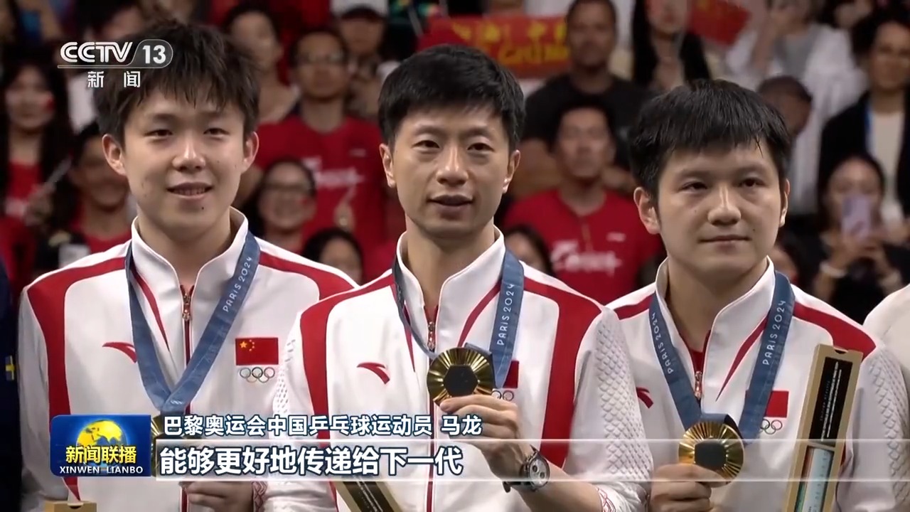 巴黎奥运会中国乒乓球运动员 马龙:首先能够在新中国成立75周年之际,不光是我自己拿到第六枚奥运金牌,同时能够中国代表团在海外也取得最好成绩,我还是非常开心,也非常荣幸。作为我来说,希望能够把自己的一些比赛经验以及一些对于乒乓球项目的理解,能够更好地传递给下一代,然后希望他们能够继续为我们中国体育事业献出自己的一份力量。