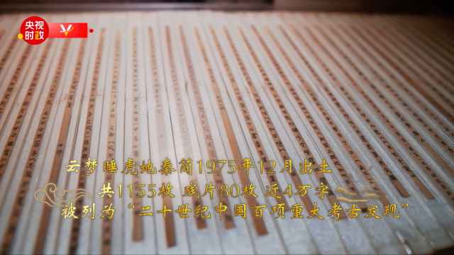 云梦睡虎地秦简,1975年12月在云梦县睡虎地秦墓中出土,共1155枚,残片80枚,近4万字。这是我国考古史上首次发现的秦简,反映了战国晚期到秦始皇时期的政治、经济、文化、法律、军事等方面的情况。
