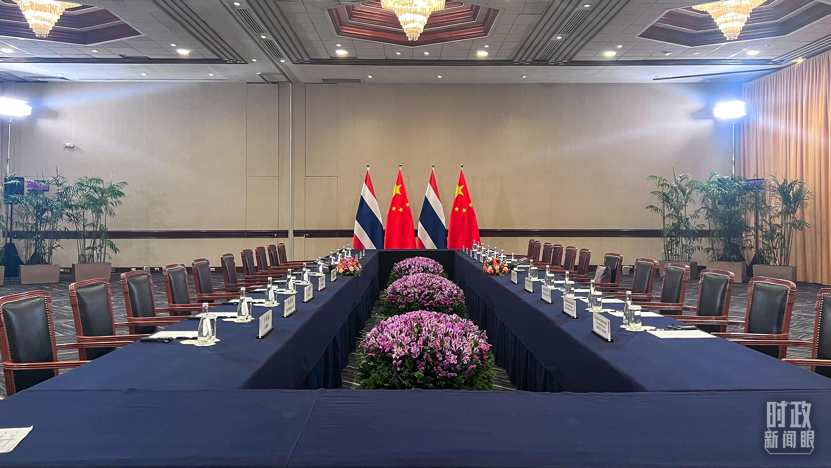 △会见现场的中泰两国国旗。(总台央视记者范一鸣拍摄)