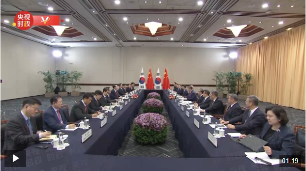 在今年这次会见中,习主席说,无论形势如何变化,中韩两国都应该坚守建交初心,坚定睦邻友好方向,坚持互利共赢目标,发挥地理相邻、文化相通、经济相融优势,加强交流,深化合作,推动中韩战略合作伙伴关系健康稳定发展。